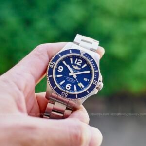 Ngay từ cái nhìn đầu tiên, chiếc Breitling A17366 Limited này đã tạo được ấn tượng bởi diện mạo đậm chất thể thao, mạnh mẽ nhưng vô cùng tinh tế. Mặt số xanh navy đặc trưng của bản Japan Limited mang lại cảm giác sâu hút, sang trọng và dễ nhận diện ngay lập tức. Sắc xanh này đậm hơn, trầm hơn và có sức cuốn hút mạnh hơn so với mặt xanh tiêu chuẩn, giúp tổng thể chiếc đồng hồ trở nên nổi bật trên cổ tay người đeo.
