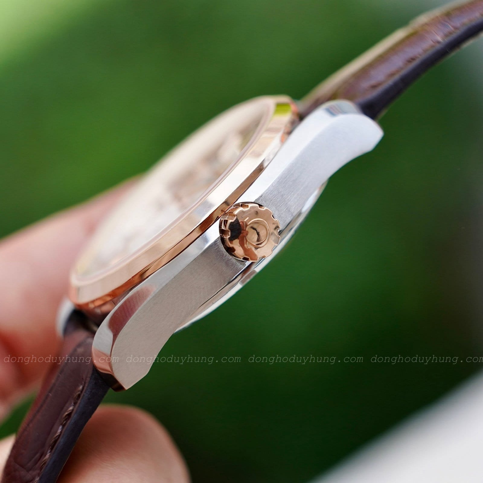 Dây da nâu cao cấp: Tôn lên vẻ cổ điển và lịch lãm.
