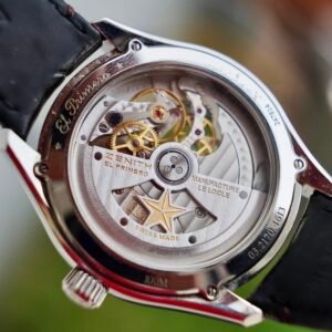 – Máy in-house Zenith El Primero Caliber 4613 dao động 36.000vph, 19 chân kính, 160 chi tiết, trữ cót 50h. – Độ chính xác cao.